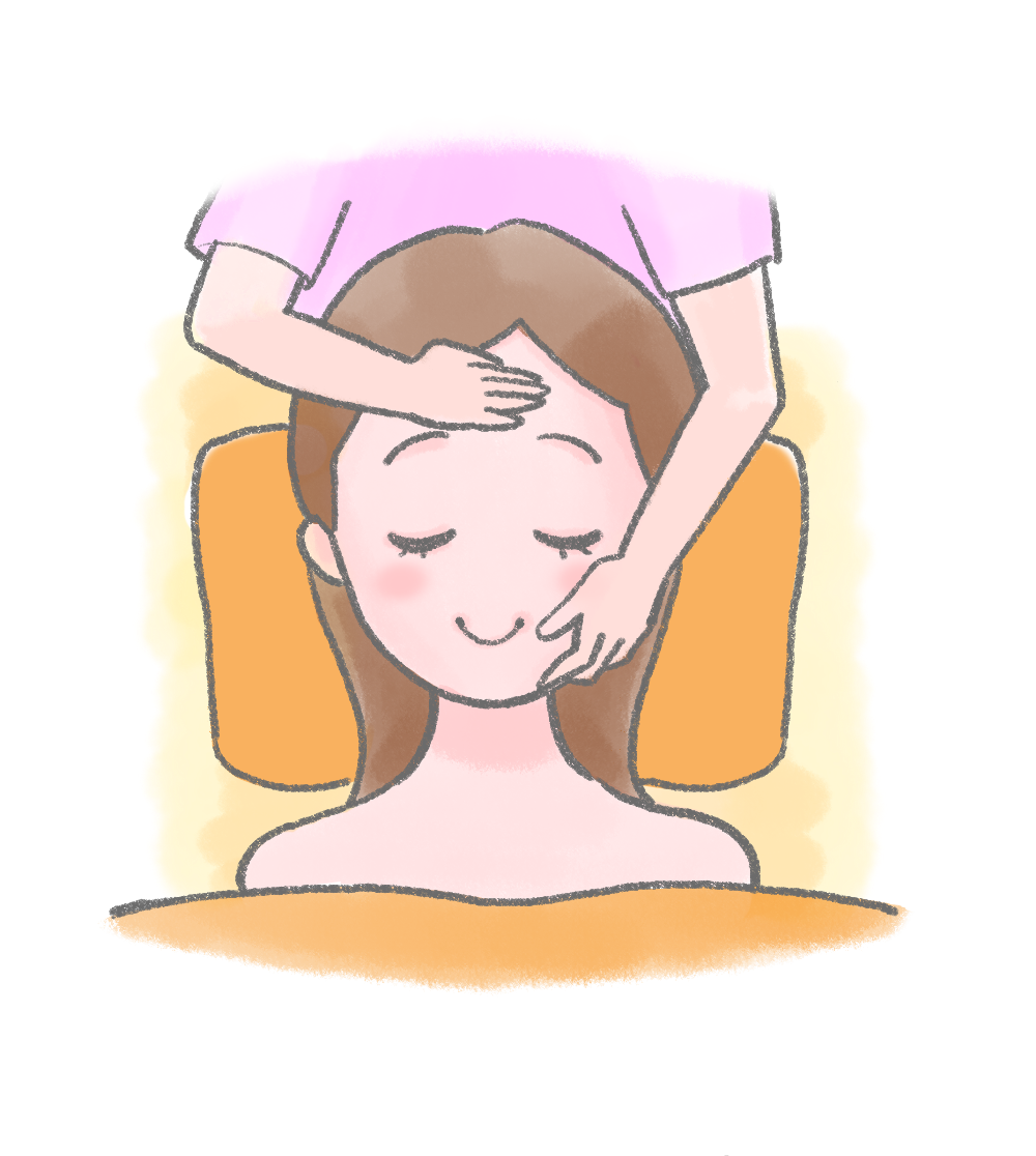また、顔筋に軽い刺激を与えていき、最後に主にえらの 骨や頬骨に優しく力を加えていきます。